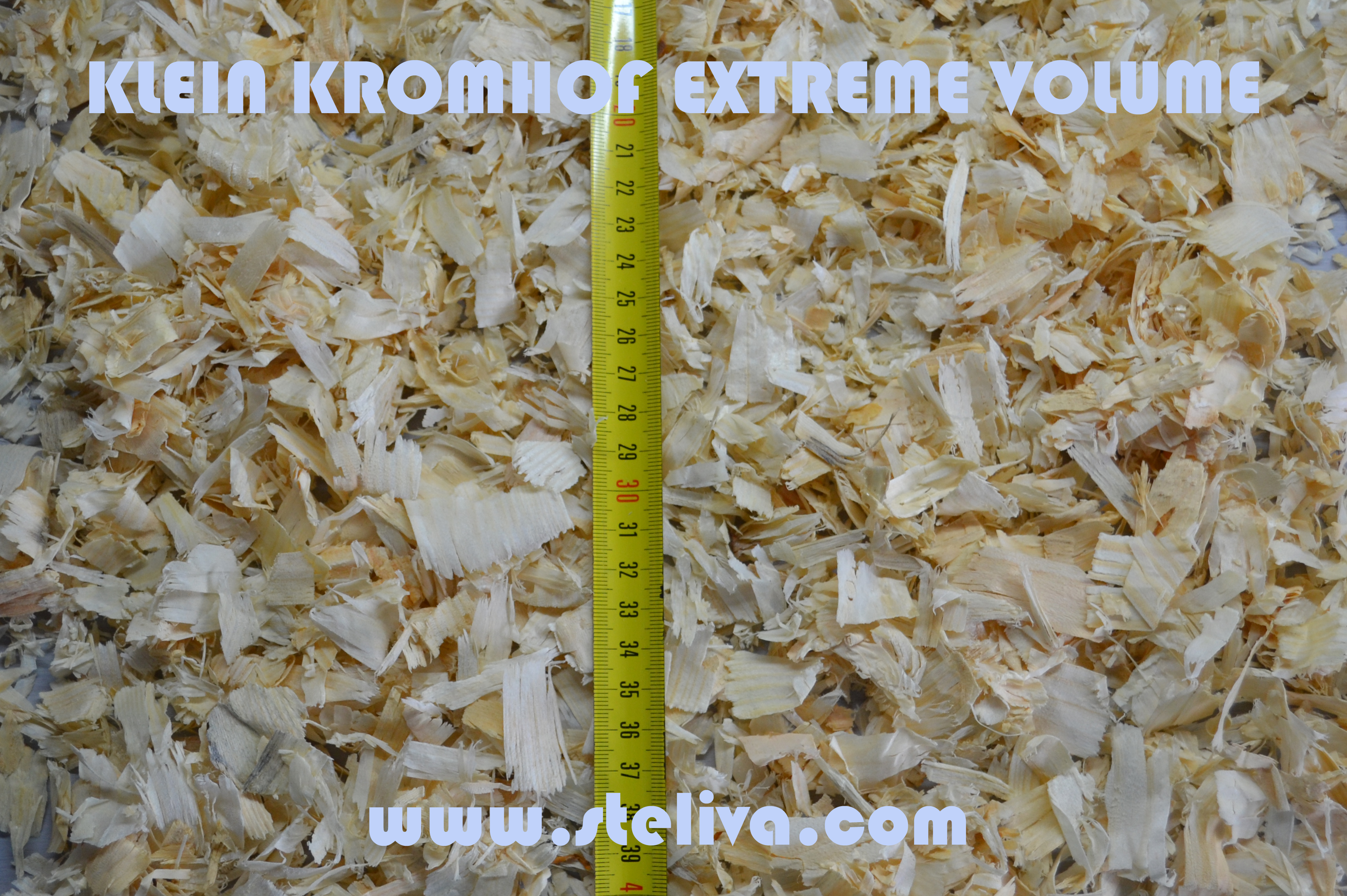 Stelivo Klein Kromhof EXTREME VOLUME je bezprašná podestýlka z hrubších a větších, nikoliv však tvrdých hoblin. Po rozbalení je podestýlka velmi "nadýchaná", svůj objem zvětší až 7x ! EXTREME VOLUME je vhodné jak pro koně, tak pro drůbež, ale nalezne i jiné využití.